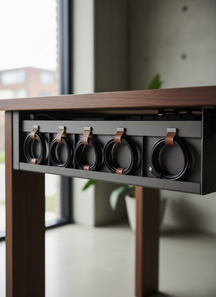If your desk is floating in the center of a studio apartment—perhaps you are using micro-zoning techniques to separate work from sleep—you cannot hide the cord against a wall.