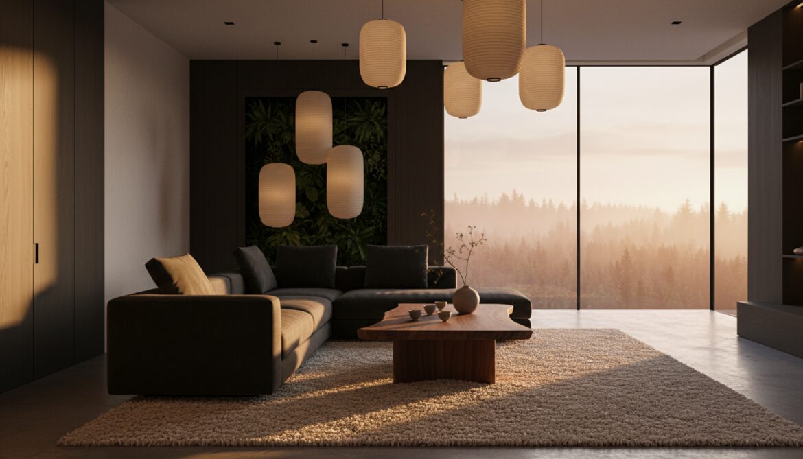 Japanese interiors often rely on floor-level lighting and paper lanterns (Akari style) that diffuse light softly. Scandinavian interiors rely on candlelight and warm pools of lamp light. Combine them.