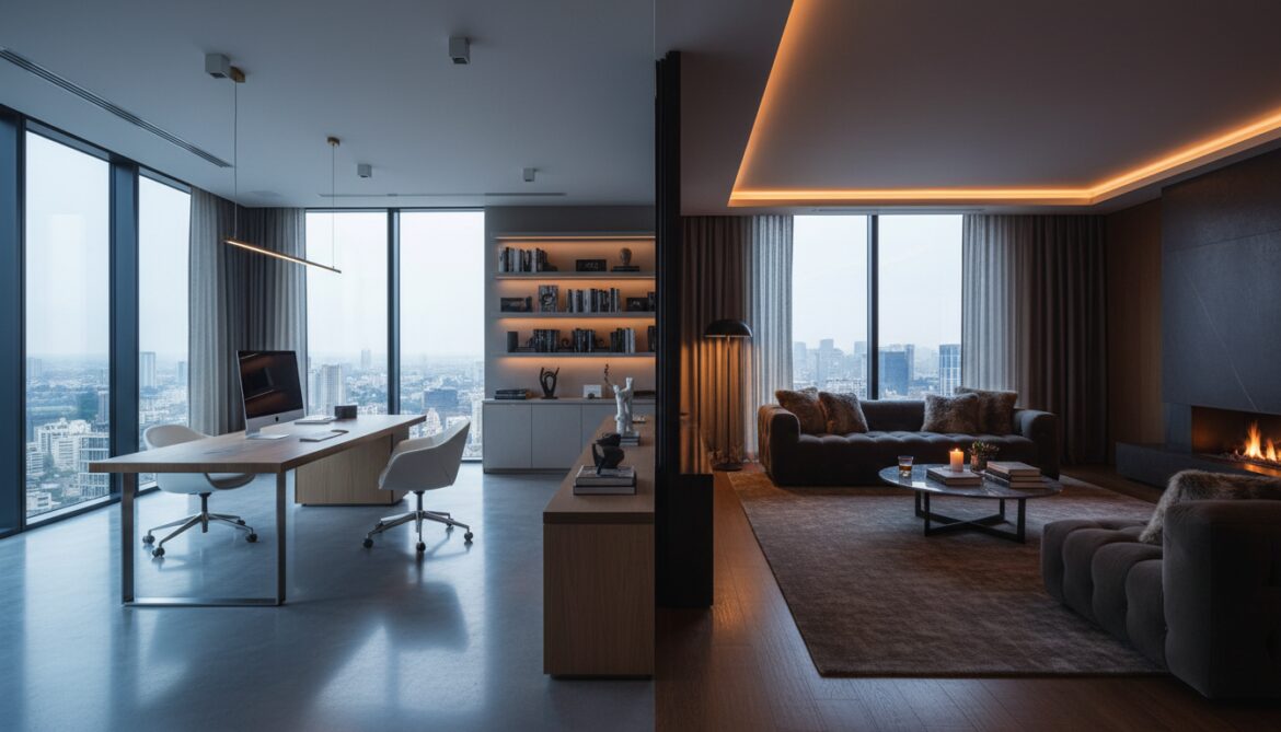 If you have a small apartment or a studio, this is how you separate your “bedroom” from your “living room” without building a wall. You use light to micro-zone the space. When the work day is done, the kitchen lights go off, the desk lamp dies, and only the living area glows.